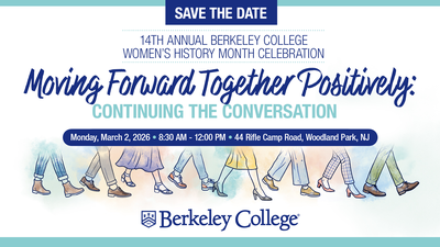 Join Berkeley College for its 14th Annual Women’s History Month celebration, an inspiring and forward-looking conversation that brings women and men together to celebrate the power of community, unity, and shared progress. This year’s theme, “Moving Forward Together Positively: Continuing the Conversation,” builds on the momentum of last year’s event by bringing together voices of women and men in community leadership and government from both sides of the aisle for a meaningful dialogue. Because progress happens when we move forward – together.