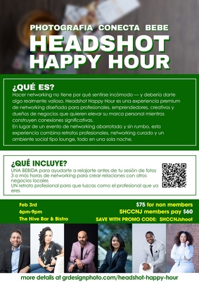 Headshot Happy Hour is a premium networking experience designed for professionals, entrepreneurs, creatives, and business owners who want to elevate their personal brand while building meaningful connections.