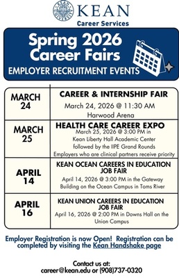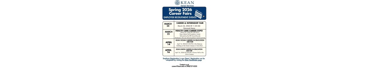 Any questions or issues registering, please reach out to career@kean.edu or call 908-737-0320.